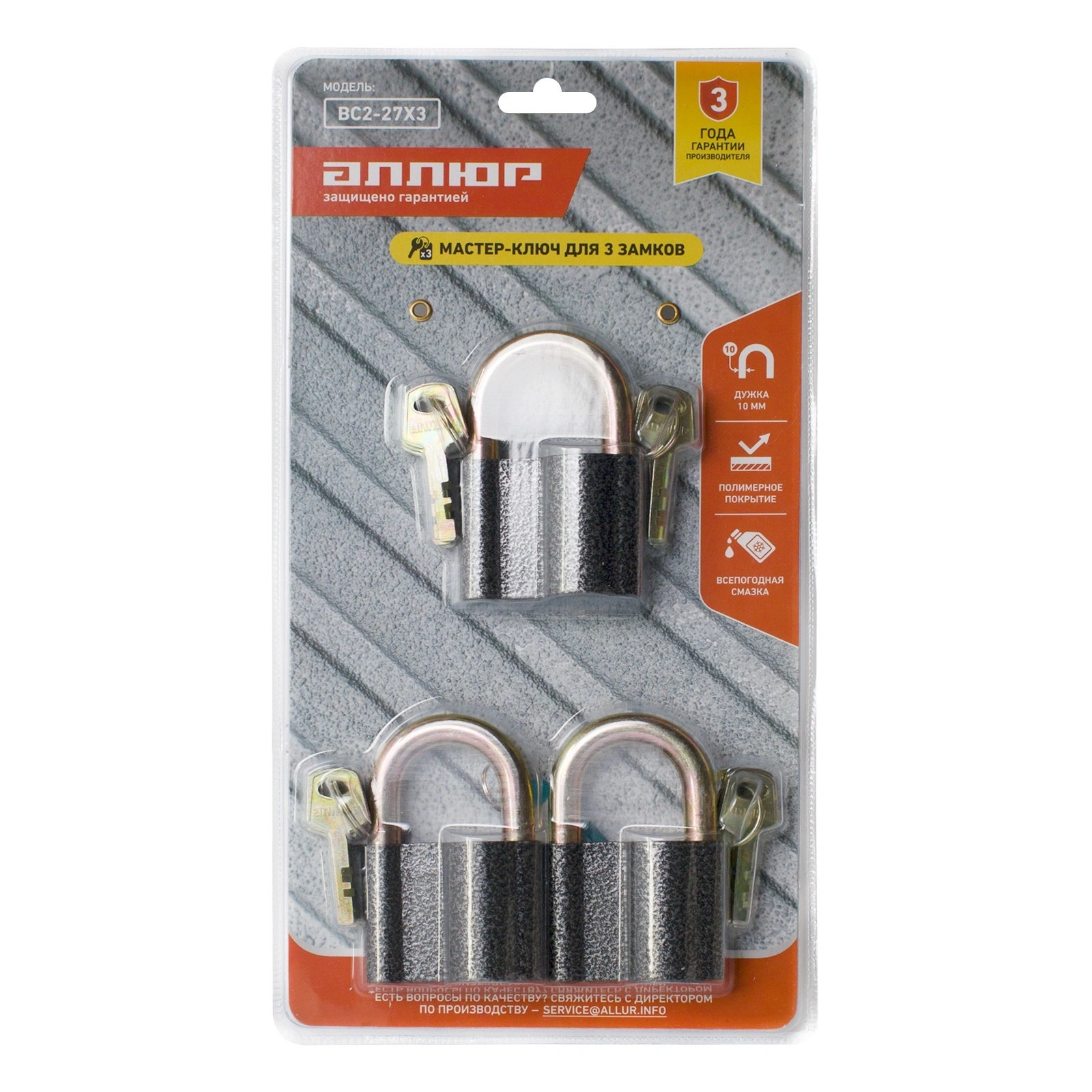 Комплектация: АЛЛЮР ВС2-27С с 3я индивидуальными ключами х3шт, комплект 3-мастер ключей х1шт