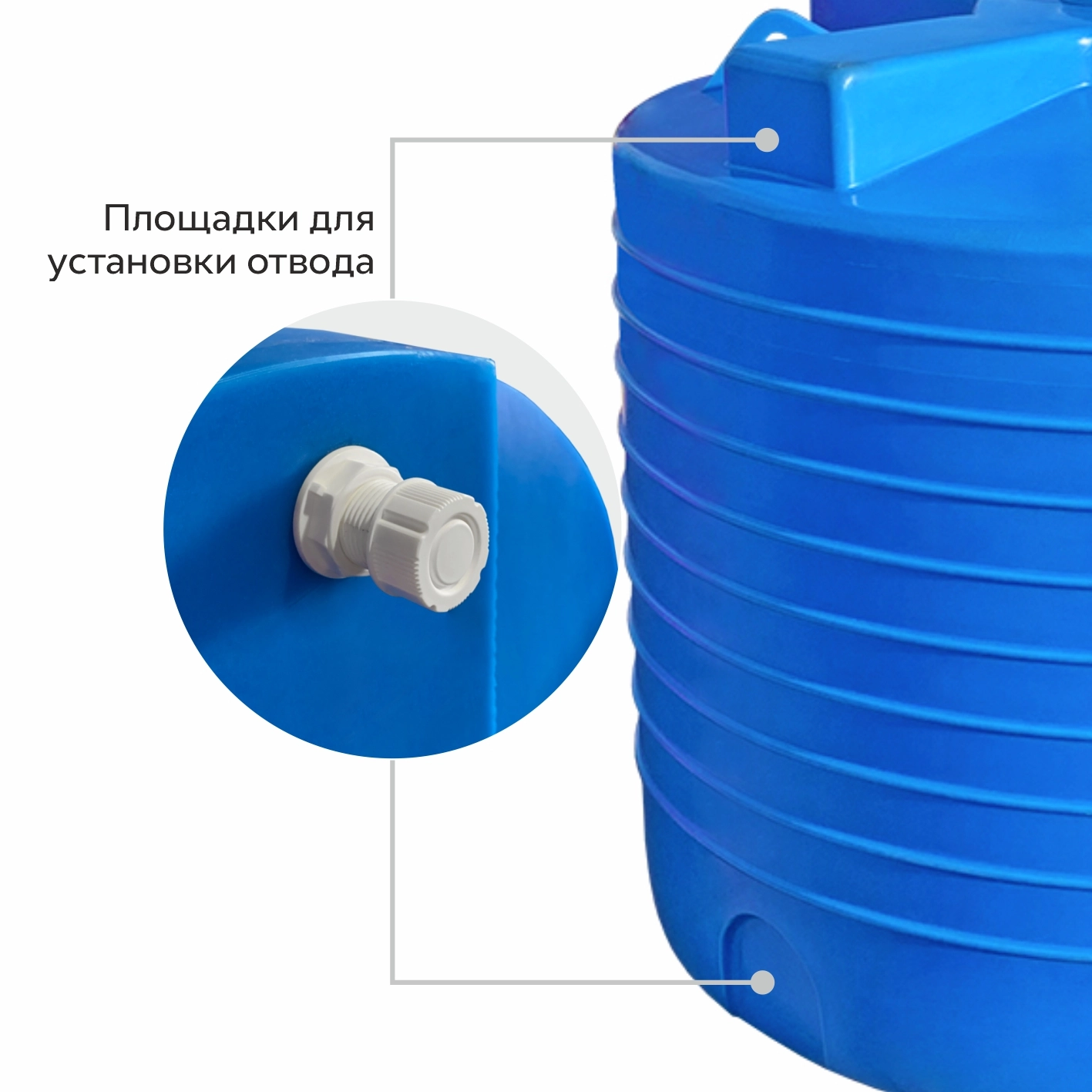 Бак 5000л комплектуется крышкой с «дыхательным клапаном». Емкость имеет специальные площадки для установки отводов и 2 проушины для транспортировки.