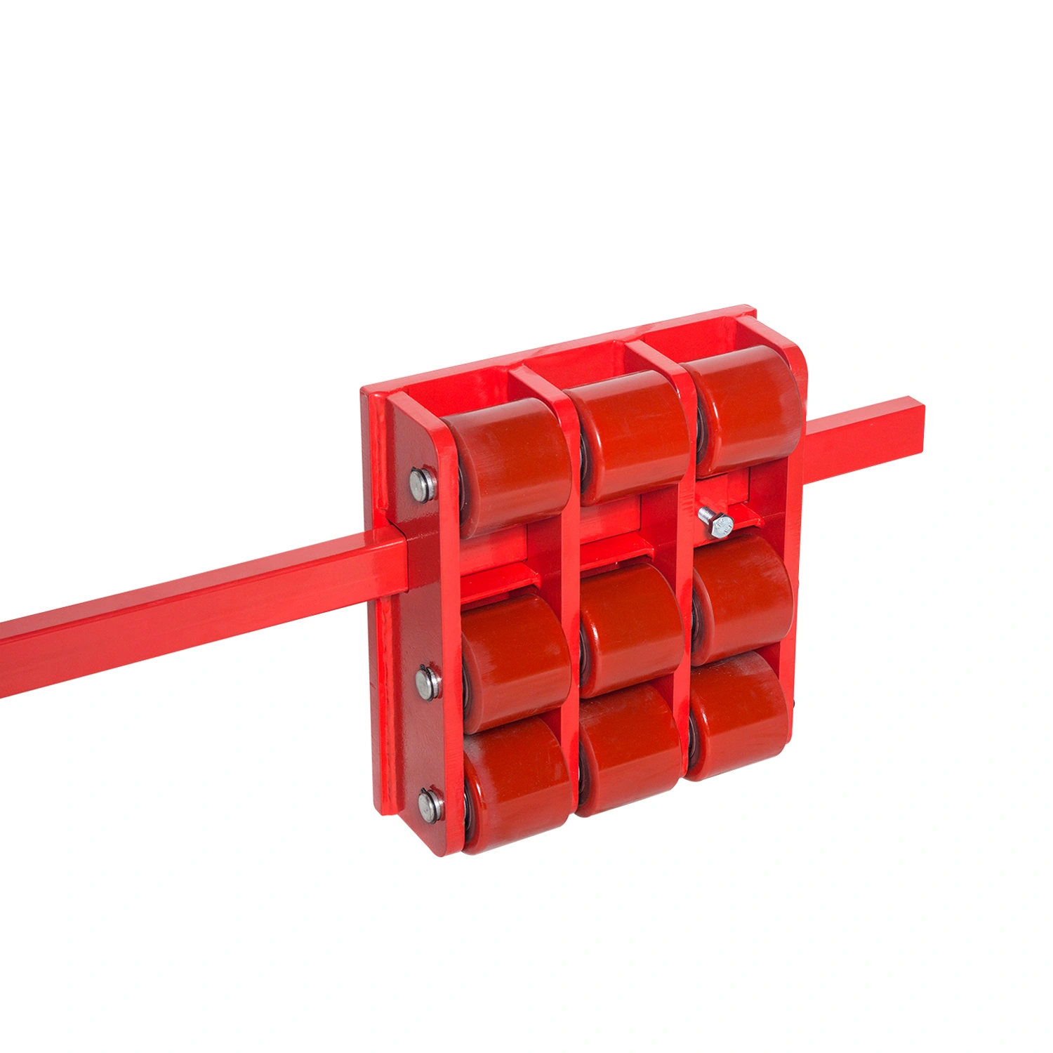 Комплект такелажных платформ X18 и Y18 рассчитан на перемещение различных грузов и оборудования весом до 36т. Система для перемещения груза X18 и Y18 представляют собой стальную комплексную конструкцию, состоящую из двух частей: 1. Ведущая опора X18 снабжена ручкой для перемещения опоры и поворотным диском для маневрирования. 2. Ведомая опора Y18. состоит из двух неуправляемых такелажных платформ. Имеет регулируемую штангу, по её длине до 1,5м, в зависимости от габаритов перевозимого груза, можно сближать и удалять друг от друга роликовые платформы. В зависимости от веса груза, перемещение может осуществляться такелажными системами с одним или двумя ведущими катками. Два ведущих катка применяют для балансирования и безопасного перемещения больших по размерам и сверхтяжелых грузов. Количество роликов Х-18 шт., материал роликов полиуретан, размер платформы Х18-780х550х110мм., диаметр поворотного диска Х18 мм- 200мм., длина рукоятки Х18-1100мм., количество роликов Y18 2х9 шт, материал роликов Y18- полиуретан, размер платформы Y18-300х550х110мм., длина штанги, Y18-1500мм., вес комплекта 138кг.