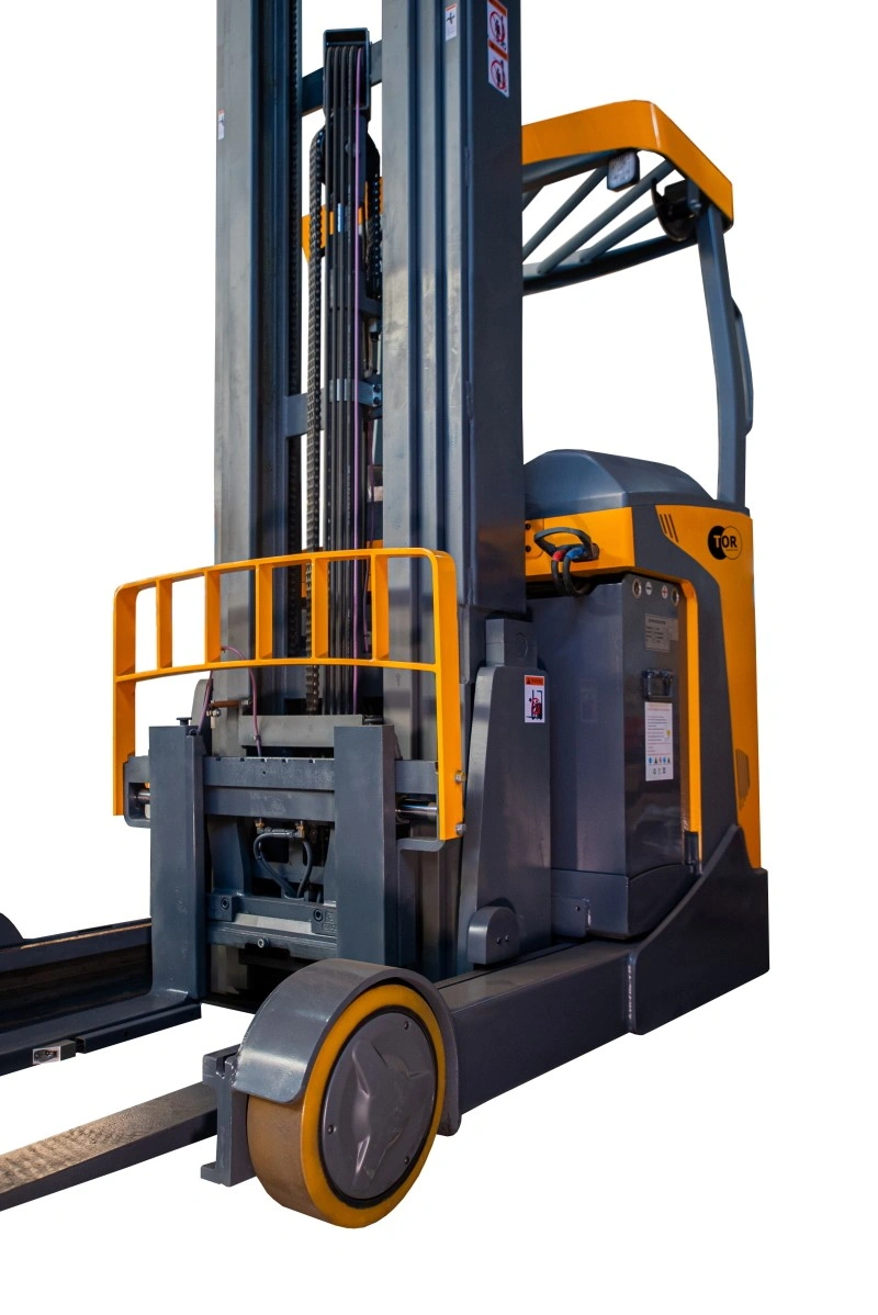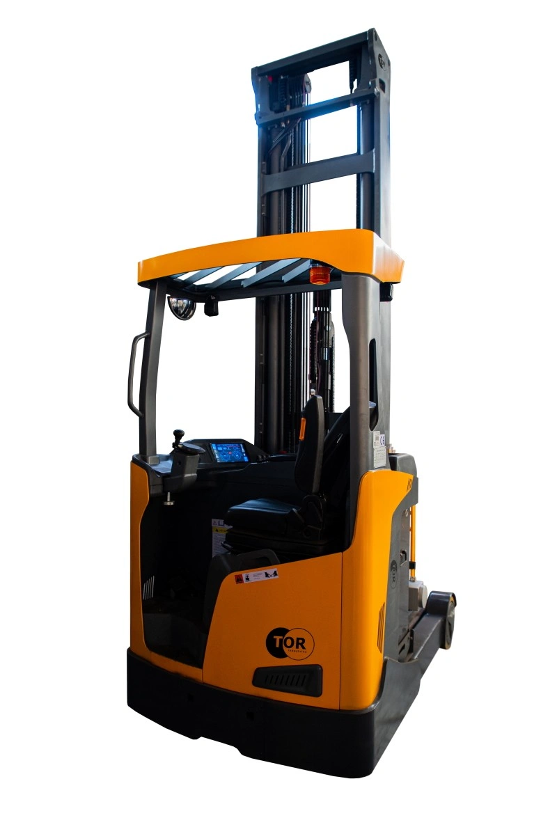 Ричтрак CQD20-D максимальной грузоподъемностью 2000кг с кислотным жидкостным аккумулятором 48/500 В/Ач. Ричтраки CQD20-D - мощные и функциональные машины, созданные для оптимизации складской логистики. Идеально подходят для интенсивной и безопасной работы на складах с высотным хранением, максимальная высота подъема грузов -12,5 метров. Множество вспомогательных функций, удобство органов управления и эргономичное место оператора обеспечивают комфорт и минимизируют физическую нагрузку оператора. Высокие стандарты производства, большое внимание к качеству используемых компонентов и внедрение новейших разработок в отрасли увеличивают производительность ричтраков ТОR, облегчают обслуживание, гарантируют безопасность и долгий срок службы. Подходят для обслуживания паллетных, проходных и набивных стеллажей. Преимущества ричтрака CQD20-D: - Высокая скорость передвижения 10,5/11 км/ч (с грузом/без) - Грузоподъемность 2000кг - Подъем на высоту 6м без потери грузоподъемности - Система усиления рулевого управления (EPS) - Электронный клапан с возможностью регулировки скорости движения катерки - Двигатель передвижения S2 60 минут мощностью 6,5кВт - Двигатель подъема S3 15% мощностью 8,2кВт - Емкий кислотный АКБ 48/500 В/Ач - Особое строение мачты обеспечивает наилучший обзор - Быстрый и удобный доступ к основным узлам - Система стабилизации при высотных операциях Возможные дополнительные опции для ричтраков CQD20-D*: - Камера для наблюдения за вилами - Функция быстрого подъема (двигатель подъема 12кВт) - АКБ увеличенной емкости 600,800,930Ач - Литиевый АКБ 400,450,525,600,750, 875Ач - Система стабилизации ASC автоматически блокирует колеса при движении мачты вперед-назад - Модуль взвешивания на вилах - Закрытая кабина - "холодное" исполнение * Установка возможна на заводе- изготовители по предварительному заказу. Стоимость и доступность опций уточняйте у вашего менеджера. Безопасность: - Специальная конструкция мачты оставляет широкий обзор - Прочный материал мачты обеспечивает высокую остаточную грузоподъемность и предотвращает тряску - Усилитель рулевого управления (EPS) - Функция ограничения по высоте: при достижении максимальной высоты вил, подъемный двигатель автоматически снижает скорость для обеспечения сохранности грузов; - Функция ограничения скорости: когда подъем вил превышает высоту свободного хода, скорость передвижения будет автоматически снижена для обеспечения безопасности работы; - Функция контроля скорости поворота: автоматически снижает скорость в соответствии с выбранным углом поворота транспортного средства; - Скорость выдвижения мачты замедляется при приближении к крайним положениям; - Тормозная система управляется гидравлическим тормозом и рекуперативным торможением одновременно. Это обеспечивает короткий тормозной путь, отсутствие инерционного воздействия, безопасность и надежность; - Стояночный тормоз включает электромагнитное тормоз, который включается автоматически после парковки, так же имеется функция сопротивления скольжению на наклонных поверхностях; - Датчик присутствия оператора OPS блокирует движение и функции спуска/подъема, если в водительском кресле нет оператора. - Технология CANbus используется для отслеживания скорости двигателя, температуры и другой информации в режиме реального времени для систематизированного управления з