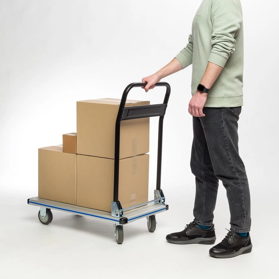 Тележка платформенная Стелла-техник FW-200M со складной ручкой предназначена для перевозки груза весом до 200кг по ровной поверхности в магазине, офисе, на складе. Тележка оснащена удобной складной ручкой и металлической платформой. Оснащается двумя поворотными и двумя не поворотными колесами из литой резины. Наличие складной ручки обеспечивает компактное хранение тележки.