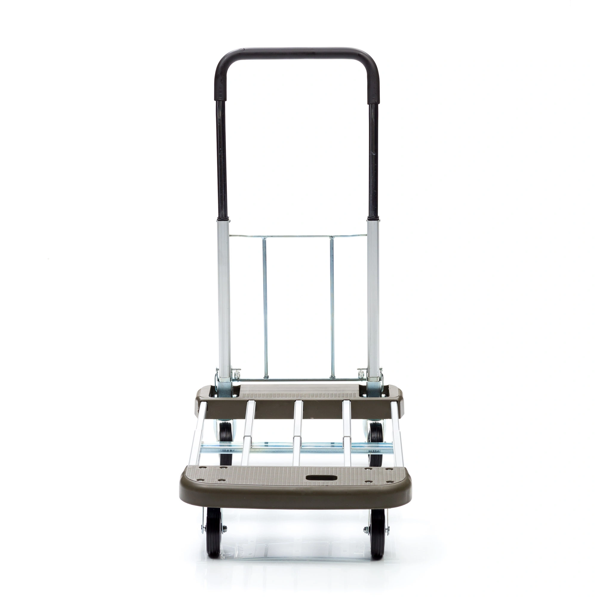 Тележка КТ-2140 имеет раздвижную и вместительную платформу и складную телескопическую ручку. Компактные размеры обеспечивают легкость хранения и транспортировки любым видом транспорта. Раскладывание модели осуществляется нажатием всего одной кнопки. Материал алюминий, вес 6,2кг, грузоподъемность 130кг, максимальная высота ручки 900мм, размер площадки в разобранном виде 430x680мм., размер площадки в собранном виде 430x470мм., материал колес резина, диаметр 100мм. Колеса с металлическим сердечником, с шариковым подшипником.