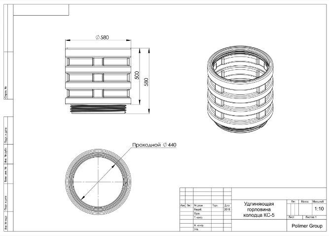 Изделие позволяет увеличить высоту колодца КС-5 на 500 мм.