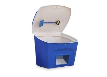 Конструкция: крышка ящика исключает попадание осадков и влаги внутрь корпуса. Наличие дозатора (окна для отбора) значительно упрощает процесс извлечения песка.